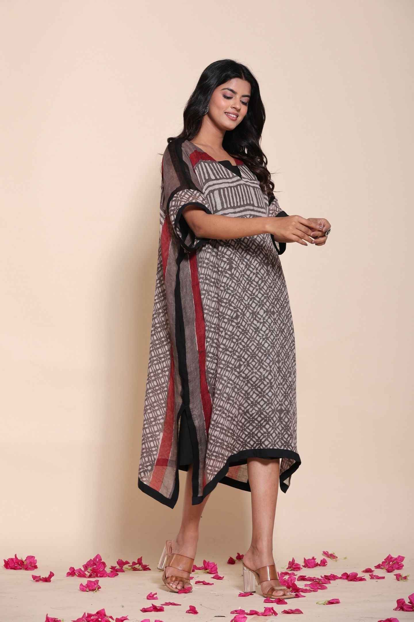 Naksh Pure Linen Free Size Brown Kaftan-Dress With Customizable Inner